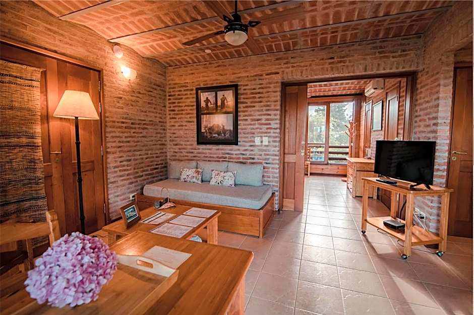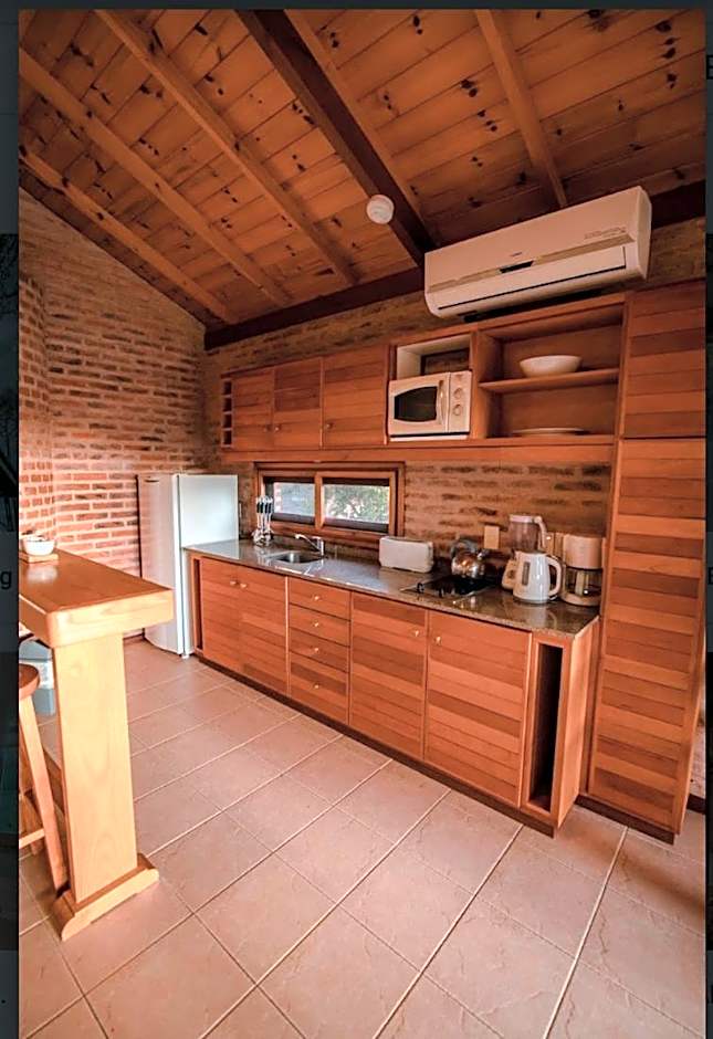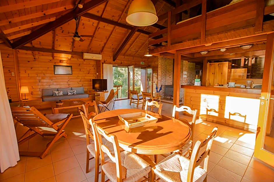 Split-level bungalows include 2 suite rooms on the ground floor. A living room with a fireplace and a fully-equipped kitchen can be found on the upper floor. The cabin features a deck with a built-in barbecue from which guests can enjoy views of the forest.